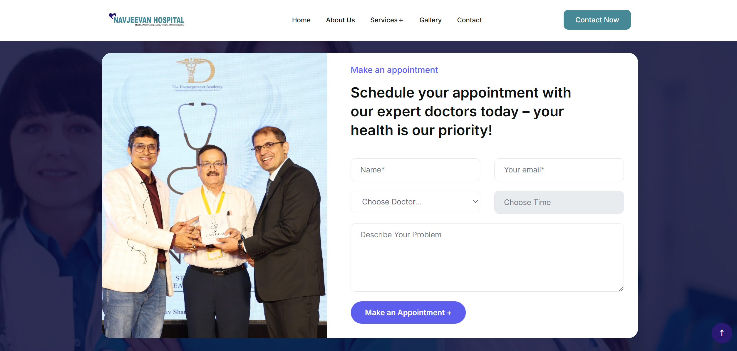 Navjeevan Hospital stands as a trusted name in healthcare, committed to delivering compassionate care with advanced medical solutions. The hospital approached us to revamp its digital presence to match its reputation for excellence in patient care and innovation. Our goal was to build a platform that reflects their values, connects with patients, and makes healthcare information easily accessible.